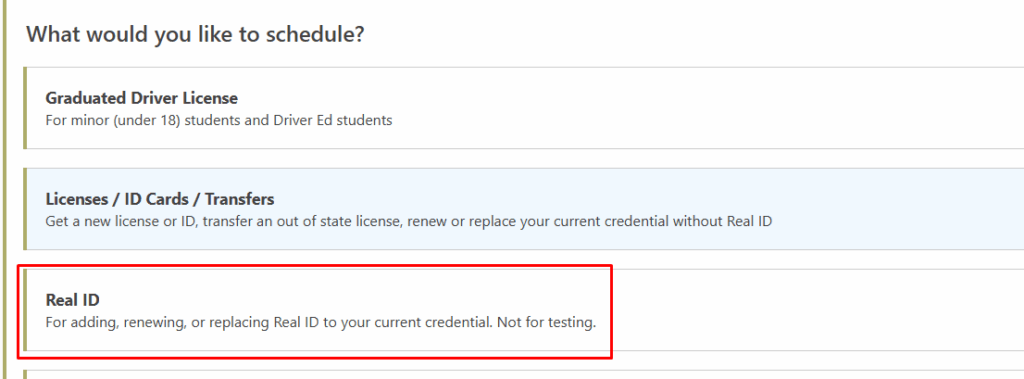 Visita selecciona la opción “REAL ID”.
